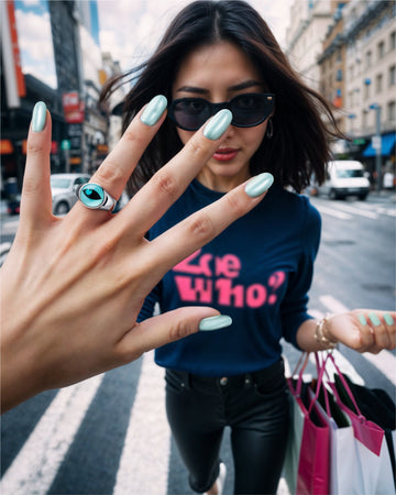 Feel it all with Panic. These short oval nails come pre-glued and ready to express your inner storm with abstract patterns that mirror your emotional world. Because even panic deserves a place to shine.