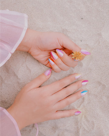 Whimsical patterns meet dreamy colors in the Delulu Press-On Nail Set. These short oval nails are pre-glued for effortless wear and bring that “head in the clouds” energy to your fingertips.