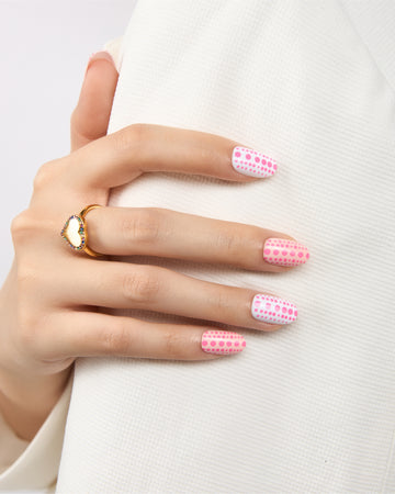 Shine Your Light features pre-glued short oval nails in a pink and black checkerboard design. A bold, playful set that turns every gesture into a radiant statement. Reusable and easy to apply, these nails are your go-to for expressing joy, confidence, and a little bit of edge.